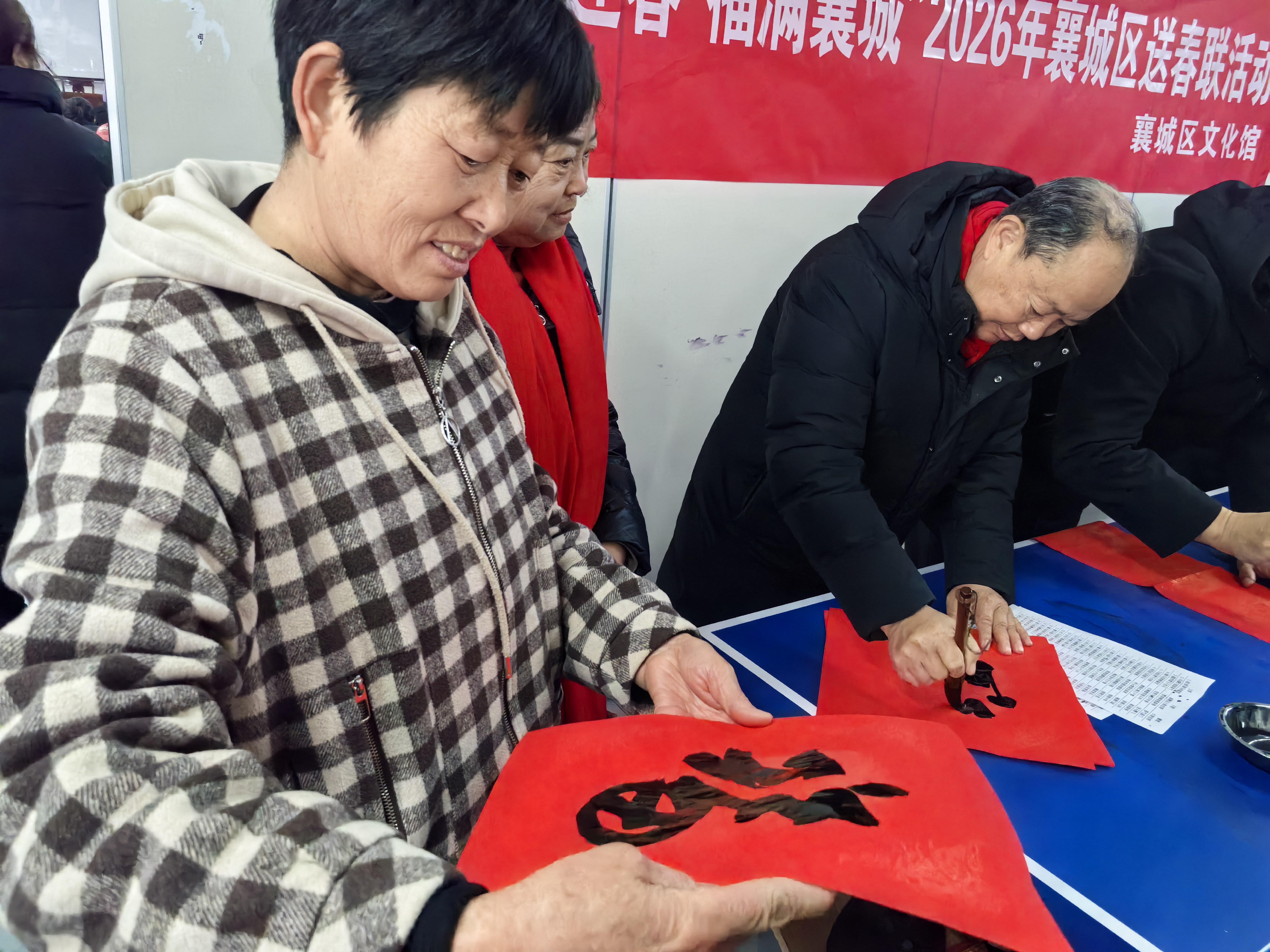 活动中不仅安排了书法家现场挥毫,为村民书写个性化春联,还特别准备了蕴含襄城文化特色的定制春联套装作为新春礼物。一副副饱含祝福的手写春联,一份份精美的文化套装,共同映红了村民的笑脸,将浓浓的年味和暖暖的情谊提前送到乡亲们手中。接下来,我们还将前往欧庙镇、营盘社区继续开展活动,为更多群众送上新春的文化祝福。